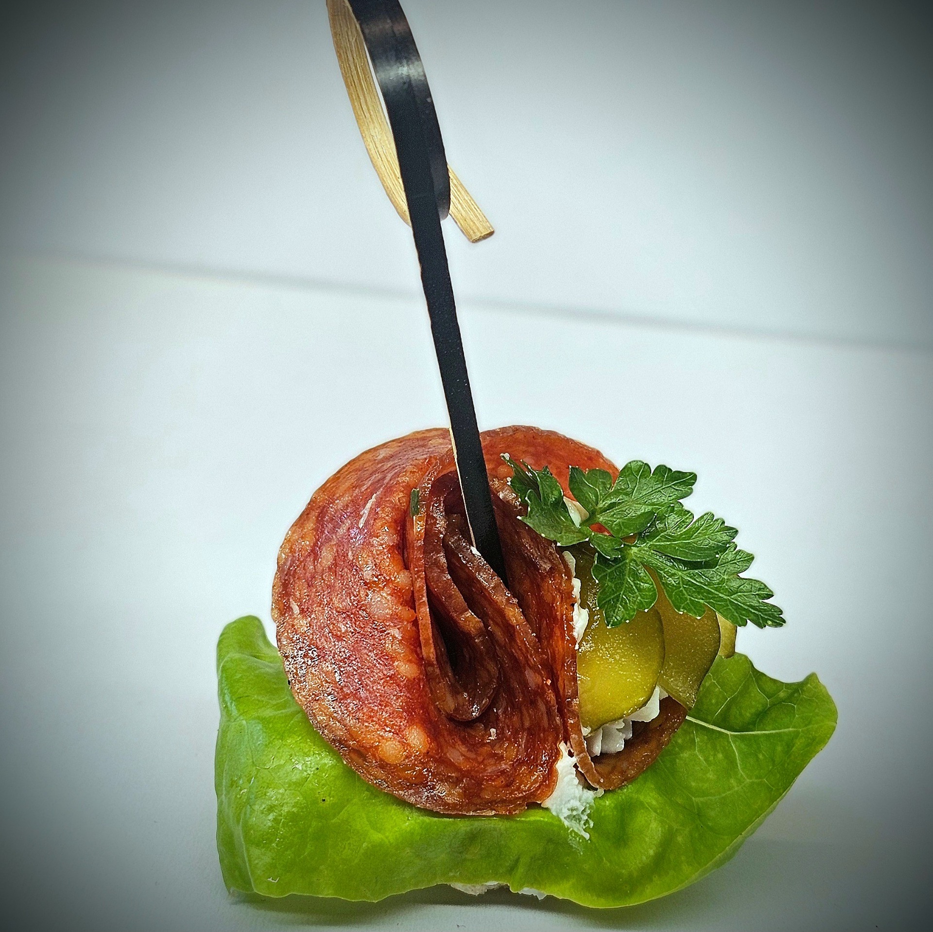 salám, kyselá okurka, salát, pomazánka